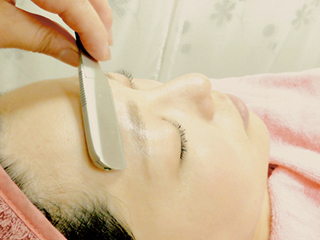 女性専用のやわらかいシェービングブラシと専用のレザーを使用。